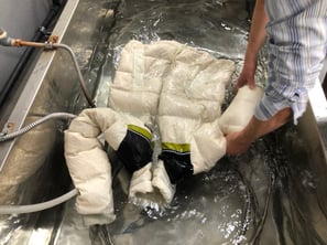 ・遠心力洗浄機で再度「すすぎ」と「脱水」を行います。
