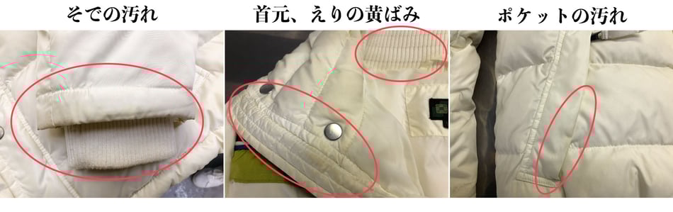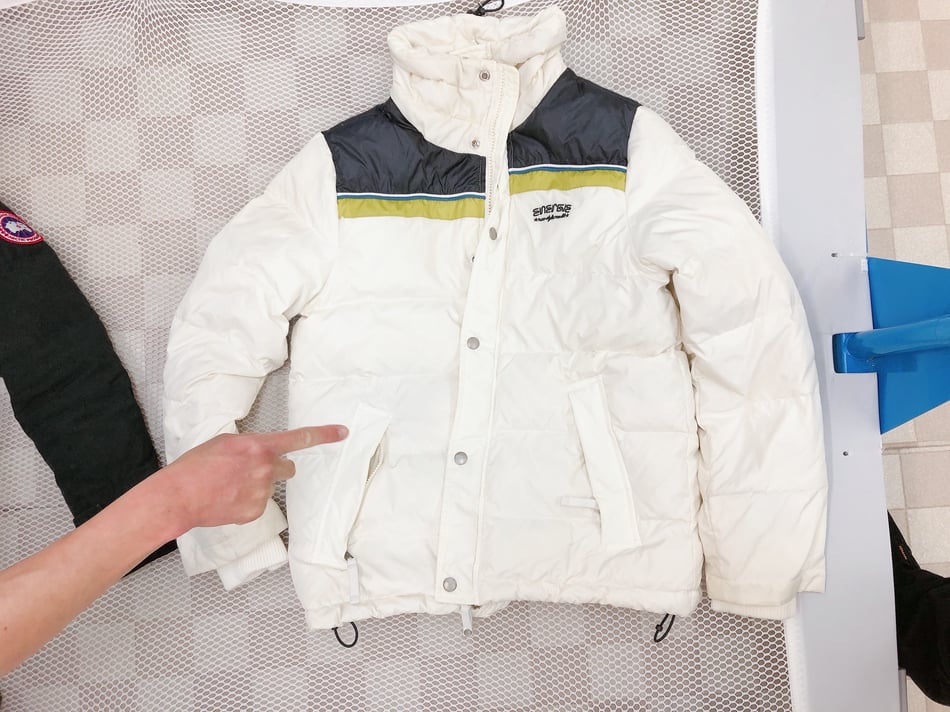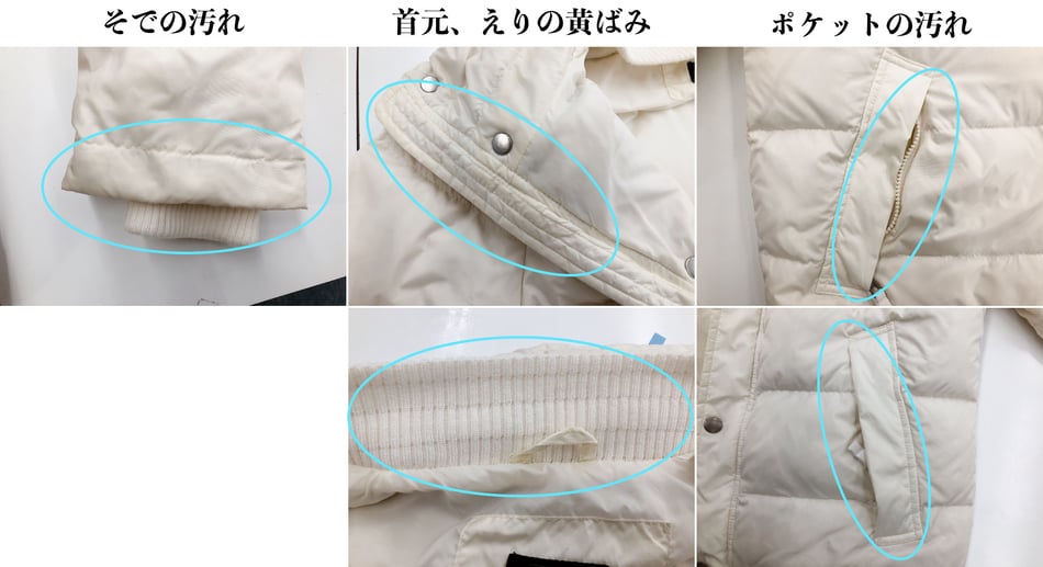 ジャンパー(ダウンコート)ですが、全体の黄ばみを真っ白にして、汚れやすい箇所の黒くなった汚れ、黄ばみをキレイにします!