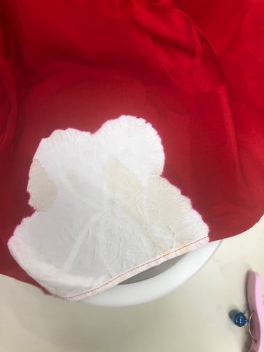 着物の白い部分が黄色く「黄変」しています。