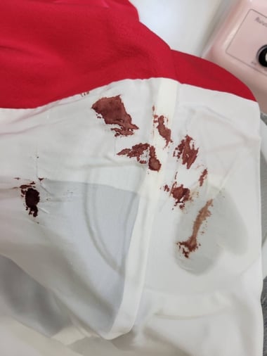 この記事には血液が付いた衣類の写真が掲載されています。