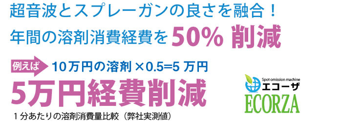 ECOとコスト削減を実現これまで無駄に消費されていた溶剤消費を大幅削減により環境負荷低減とランニングコストの大幅削減を実現!